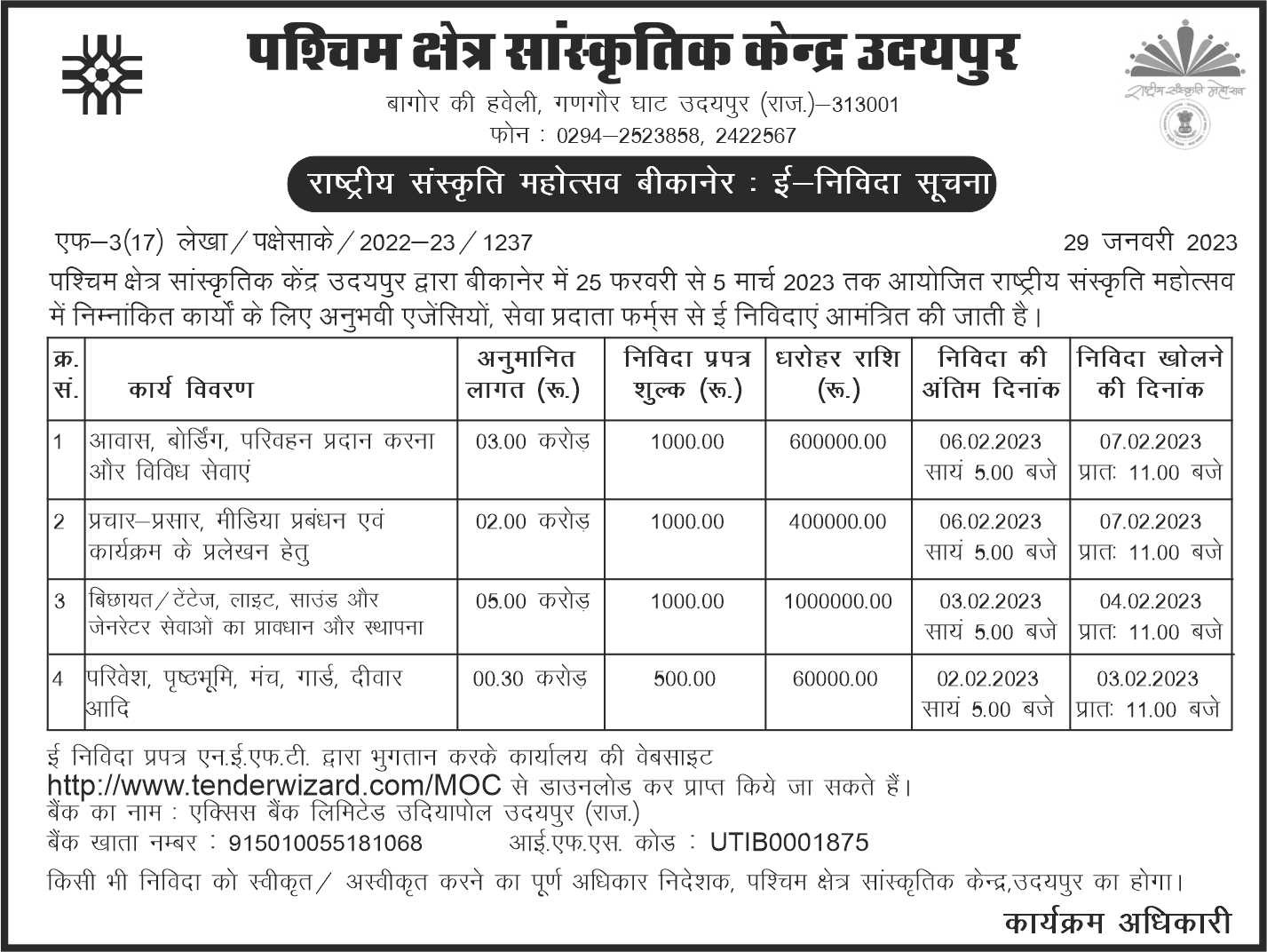 शिल्पग्राम के मुक्ताकाशी रंगमंच पर बेक ड्रॉप एवं (2) वृहद् द्वार का निर्माण कार्य ई – निविदा सूचना