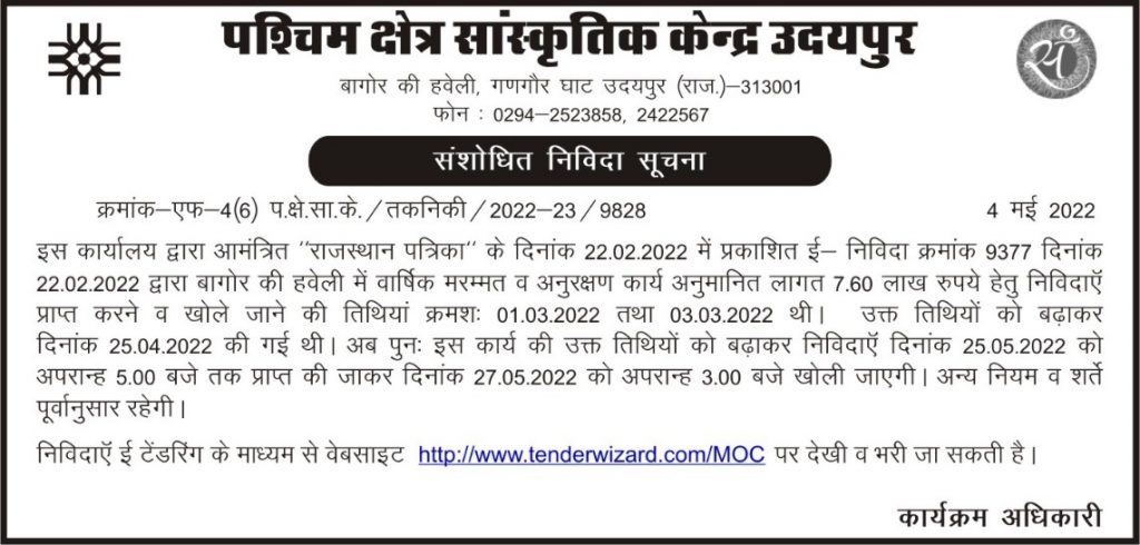 Home/Bagore Ki Haveli/Sanshodhit Nivia Suchana Bagore Ki HaveliLatest NewsTenders & Notification Sanshodhit Nivia Suchana Sanshodhit Nivia Suchana Tweet