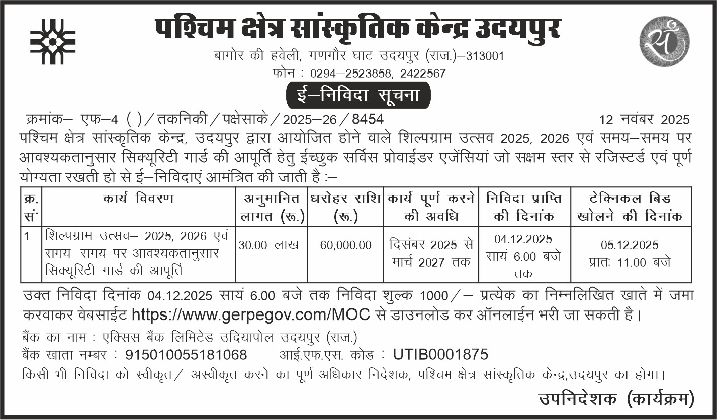 Home/Tenders & Notification/Security Guard Tender for Shilpgram Utsav 2025 Tenders & Notification Security Guard Tender for Shilpgram Utsav 2025 Tweet