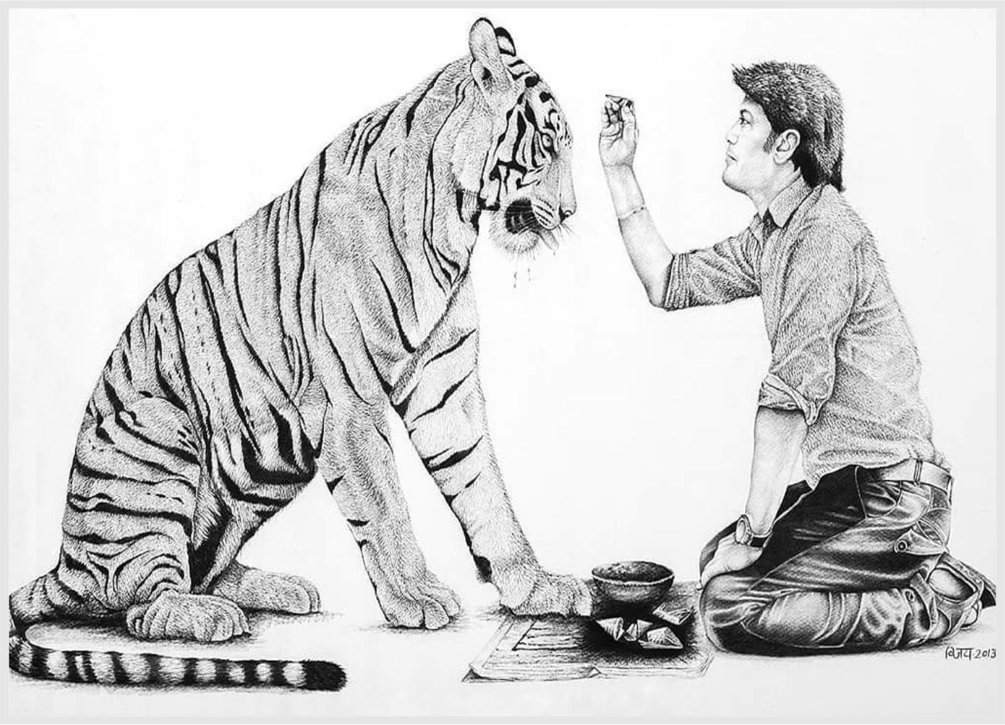 Tigers do not normally view humans as a prey. Tigers tend to attack humans only when they feel threatened.